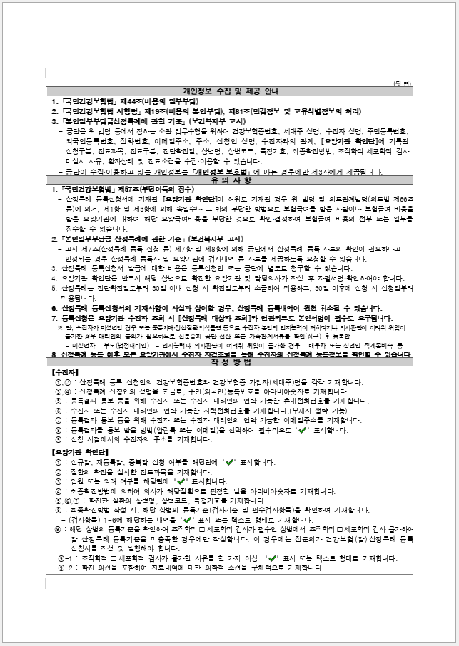 의사가 발행한 「건강보험 산정특례 등록 신청서」 1부