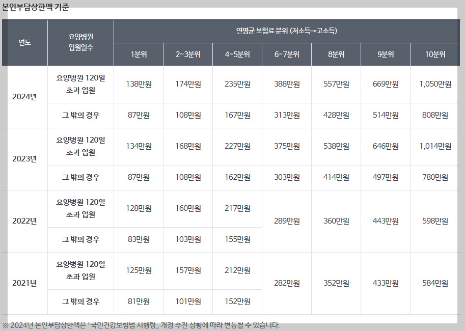 본인의 보험료 분위와 상한액을 파악해 두시면 보험 청구 시 당황하지 않으실 겁니다.