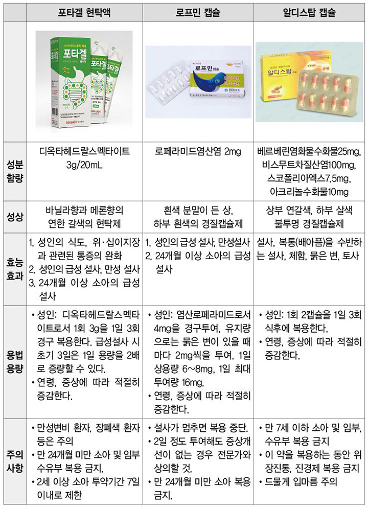 [3] 약사공론 - 약국에서 배변잡기 '지사제 BIG 3'를 비교한다 (https://www.kpanews.co.kr/article/show.asp?idx=219955&category=H)