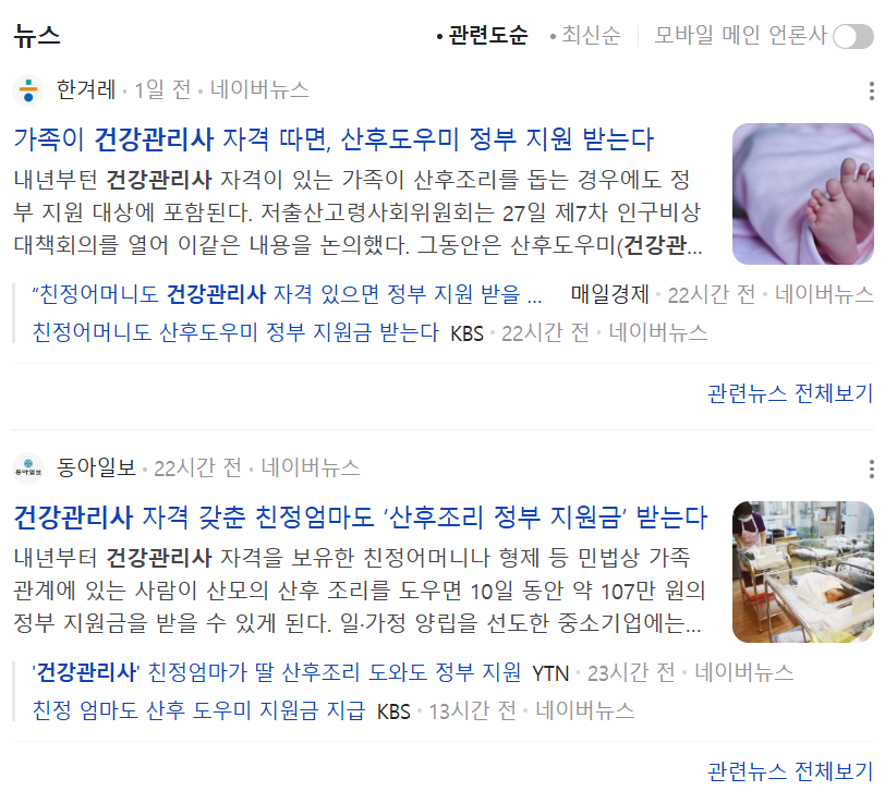 내년부터 건강관리사 자격이 있는 가족이 산후조리를 돕는 경우에도