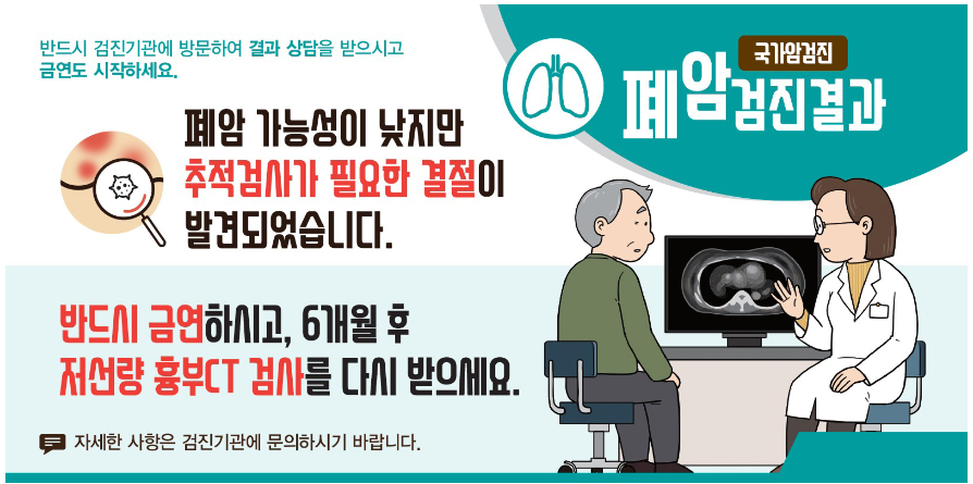 오늘은 국가암검진 폐암검진의 결과별 조치사항에 대해 살펴보았습니다.