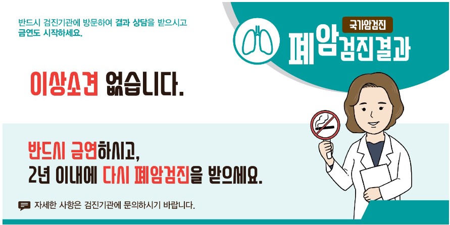 반드시 금연하시고 2년이내 다시 폐암검진을 받으세요.