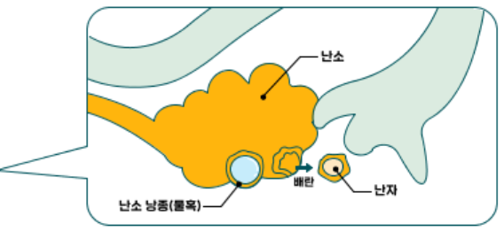 난소에는 난자와 난포(난자를 둘러싼 막)가 있습니다. 난자를 둘러싼 난포는 배란 후에 사라지게 되는데, 간혹 배란 후에도 난포가 사라지지 않고 낭종(물혹)처럼 남아있는 경우가 있습니다.