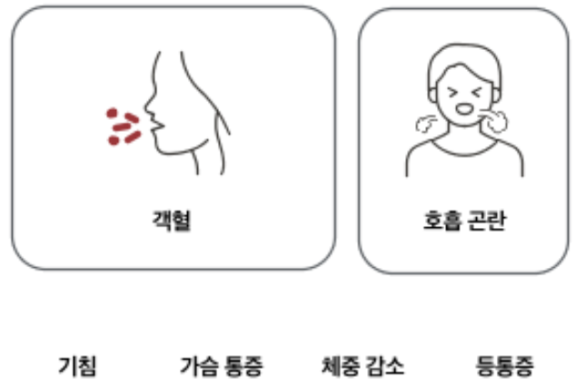 기침, 객현, 가슴 통증, 호흡곤란, 목소리 변화 등이 폐암 증상으로 나타날 수 있습니다.