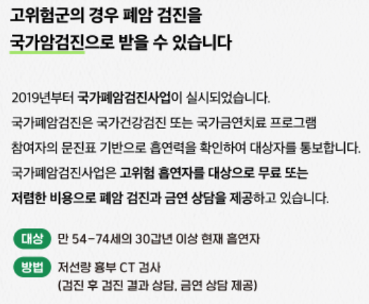 안녕하세요! 건강도우미 우주파파입니다. 오늘은 국가 암검진 중 폐암 검진 결과에 따른 조치사항에 대해 함께 알아보겠습니다. 무료 암검진 국가 사업 살펴보기. 암종별 대상자 연령기준 및 검