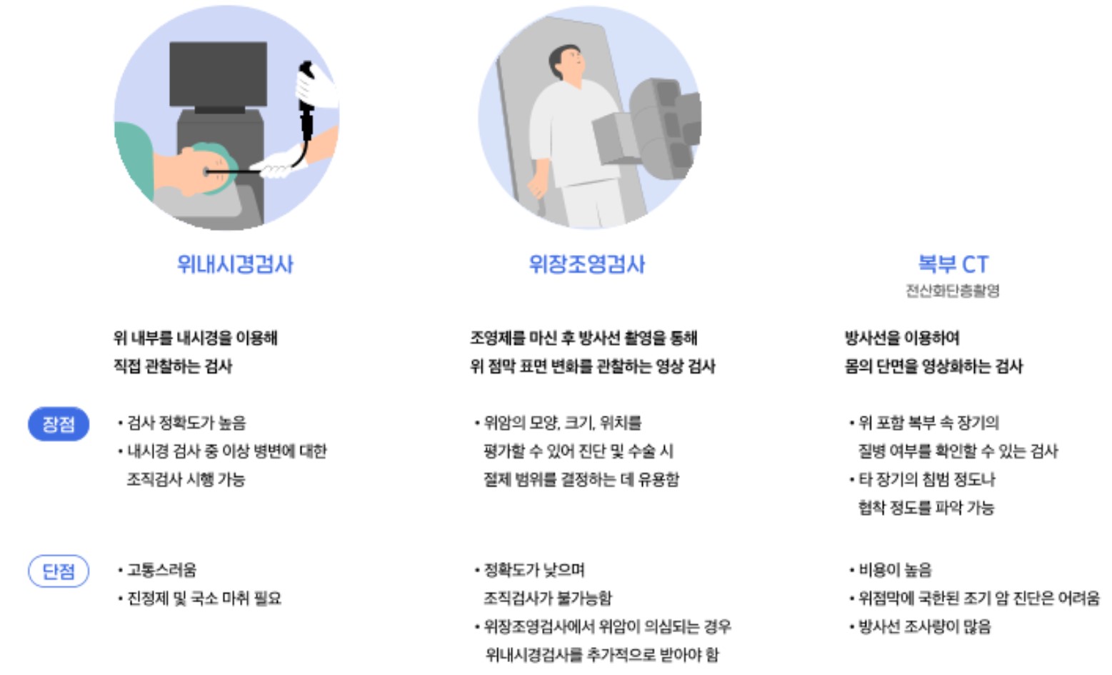 진단 검사 : 위암이 의심되는 증상이나 징후가 발생했을 때, 위암 여부를 확인하기 위하여 시행하는 의학적 검사 과정입니다.