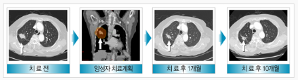 양성자치료 후 종양이 흔적만 남았으며 주변 폐의 손상이 전혀 관찰되지 않았습니다.