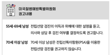 - 전립선특이항원(PSA)검사 : 혈액검사