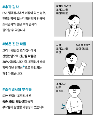 자라고 생존율이 높아 조기 검진의 효과가 불확실하고, 조직검사 과정에서 부작용을 경험할 수 있습니다.