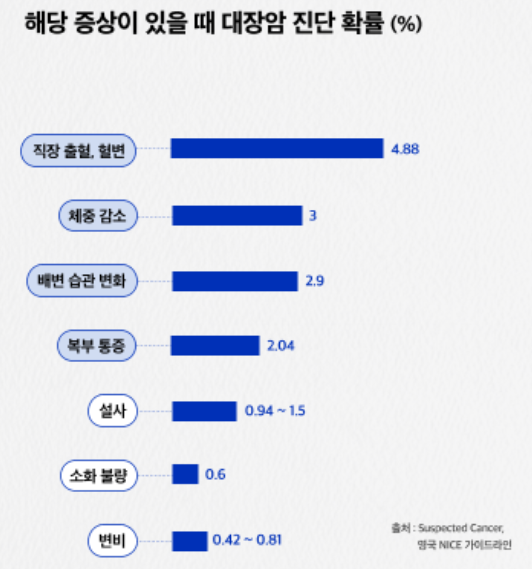 대장암의 평균 5년 생존율은 74.3% 이지만, 조기 발견 시 생존율이 93.8%까지 높아질 수 있습니다.