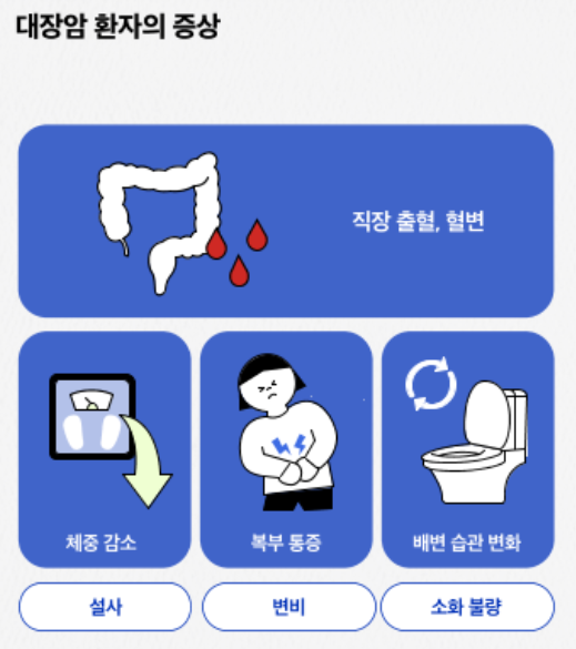 설사·변비 등 배변 습관이 바뀌거나, 복부 불편감 등으로 대장암을 의심하는 분들이 있는데, 한 가지 증상만으로 대장암을 의심할 필요는 없습니다. 하지만 대장암이 진행됐을 때에는 여러 증상이 함께 나타납니다.