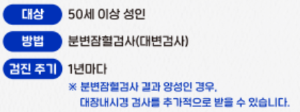 ※ 분변잠혈검사 : 대변 중에 눈에 보이지 않는 소량의 혈액을 검출하는 대장암 조기 발견을 위한 검사입니다.