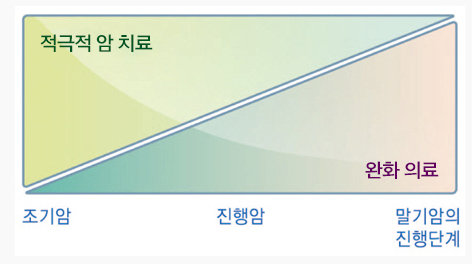 만일, 말기에 가까워지면서 치료로 얻는 이득이 손해보다 적게 되면, 완화의료에 치중하는 것이 환자에게 더 도움이 됩니다. 완화의료를 통해 환자에게 편안함을 주는 것도 중요한 치료이기 때문입니다.