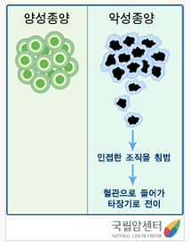 정리하면 양성 종양과 다른 악성 종양의 가장 큰 특성은 체내 각 부위로 확산되고 전이되어 생명을 위태롭게 한다는 것입니다.