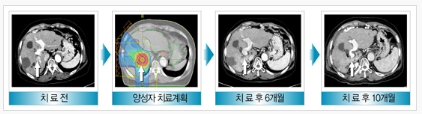 양성자치료 후 10개월 지난 CT상 주변 간손상 없이 종양이 소실되었습니다.